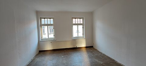 Derzeit ist die Wohnung ohne Bodenbelag, so dass die potenziellen Mieter noch bei der Auswahl des Bodens ihre Wünsche äußern können.